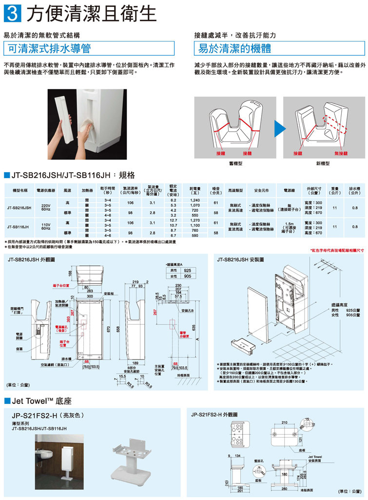 新溫風噴射乾手機220V (烘手機) JT-SB216JSH2